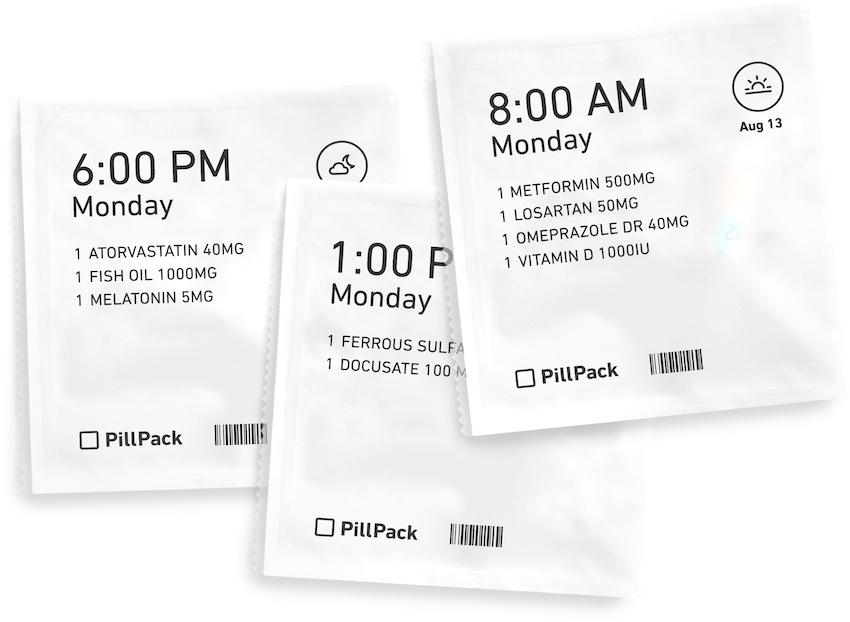 Amazon ha construido su servicio sobre la infraestructura de PillPack, la compañía que adquirió en 2018 por casi mil millones de dólares, y de hecho, su fundador, TJ Parker, es ahora el VP of Pharmacy de toda la compañía. Sin embargo, no se elimina el servicio de la propia PillPack, que sirve principalmente a usuarios mayores que requieren combinaciones de medicamentos, y que envía en paquetes de treinta días en los que las pastillas aparecen agrupadas en unos característicos sobres blancos que el usuario abre cada día con las píldoras correspondientes. Ese tipo de administración individualizada es, sobre todo en el caso de pacientes mayores, susceptible de mejorar la adherencia al tratamiento y, además, de disminuir el número de potenciales errores.