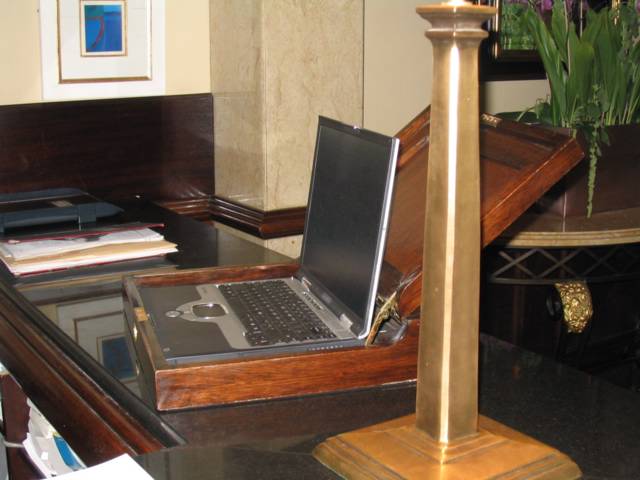 La interesante interpretación inglesa de la tecnología… un moderno laptop dentro de una caja de maderas nobles ;-)
