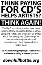 «We live in a connected world now. Some find that frightening. If people are downloading our music, they’re listening to it. The internet is like radio for us. I don’t believe every download is a lost sale (…) Stop trying to treat music like it’s a tennis shoe, something to be branded. If the music industry wants to save money, they should take a look at some of their six-figure executive expense accounts. All those lawsuits can’t be cheap, either»