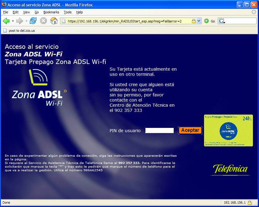 Me desperté temprano («secret of life is gettin’ up early, secret of life is stayin’ up late«… Faith Hill :-) y encendí el ordenador para repasar la clase que iba a tener después. Intenté entrar en el correo, y… empezaron los problemas. La conexión se empeñó en rechazar mis intentos de login, con el pretexto de que «mi tarjeta estaba actualmente en uso en otro terminal» (algo que resultaba ser perfectamente falso, por supuesto, entre otras cosas porque físicamente no puedo extraer mi tarjeta de mi terminal… bueno, sí, pero con paciencia y un destornillador). Pero ahí estaba Telefónica, empeñada en suponer que yo era algún tipo de delincuente, que estaba prestando mi tarjeta a diestro y siniestro para robarle su dinero. Nadie había utilizado mi clave, y el error no podía responder a nada que yo hubiese hecho, dado que me había limitado a entrar y salir de diferentes sitios en el navegador. Probé con Firefox tres o cuatro veces, probé con Explorer, apagué y encendí la tarjeta repetidas veces… lo normal en estos casos. Nada. Hacia las siete de la mañana, decidí llamar al Centro de Atención Técnica, 902 357 333, que venía en el mensaje de error. Impresionante documento. Resultó que no tenían ni la más ligera idea de que pudiese tener un papelito impreso en un cajero de La Caixa y que me diese derecho a nada. No les constaba, Y como el papelito no tenía un número de tarjeta (puesto que no era una tarjeta como tal), no podían hacer nada por mí. Bueno, sí… decirme que hablase con el hotel. Me salgo a recepción… encantadores, colaborativos, pero ni idea, por supuesto. La WiFi funcionaba perfectamente, y a ellos no les habían dado instrucciones de ningún tipo para ese caso. Vuelvo a llamar a Telefónica, donde me dan, tras insistir en que NECESITABA la conexión para la clase que empezaba a las 09:00, otro número de teléfono, el 901 501 083. Número al que, por supuesto, llamo inmediatamente. No tengo ni idea de lo que cuesta un 901, pero a esas alturas habría llamado incluso a un 803… hasta habría hecho una llamada erótica o aceptado que me leyesen el futuro en los posos del café con tal de conectarme. Y me encuentro… ¿qué? Simplemente, un mensaje grabado que me informa que el servicio de atención telefónica está cerrado, y no abre hasta las 09:00. A las 09:00, por supuesto, yo estaba en mi clase.