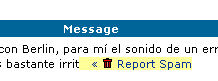 Me acabo de encontrar esta novedad en el sistema de gestión de comentarios de Haloscan: al pasar el ratón por el texto de cada comentario, aparece un pequeño texto marcado en amarillo, que te permite definir ese comentario como spam. Ignoro completamente si construirán con ello una base de datos de spammers, de direcciones IP o de algún otro elemento de identificación, y entrarán así en la habitual dinámica de «identidades mutantes» que ya hemos visto previamente en otros sitios como Enetation, o si enviarán a unos matones que les rompan las piernas (o al menos los dedos de teclear) a los spammers que den demasiado la lata, que sería sin duda la «sofisticada técnica» que me gustaría emplear a mí.
