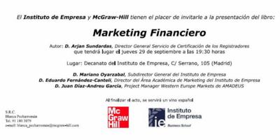 Por lo demas solo esperar el día 29 a aquellos que esten interesados en el mundo del marketing financiero, por la presentacion de mi libro, que es uno mas de management, ni mejor ni peor que el resto (espero!).