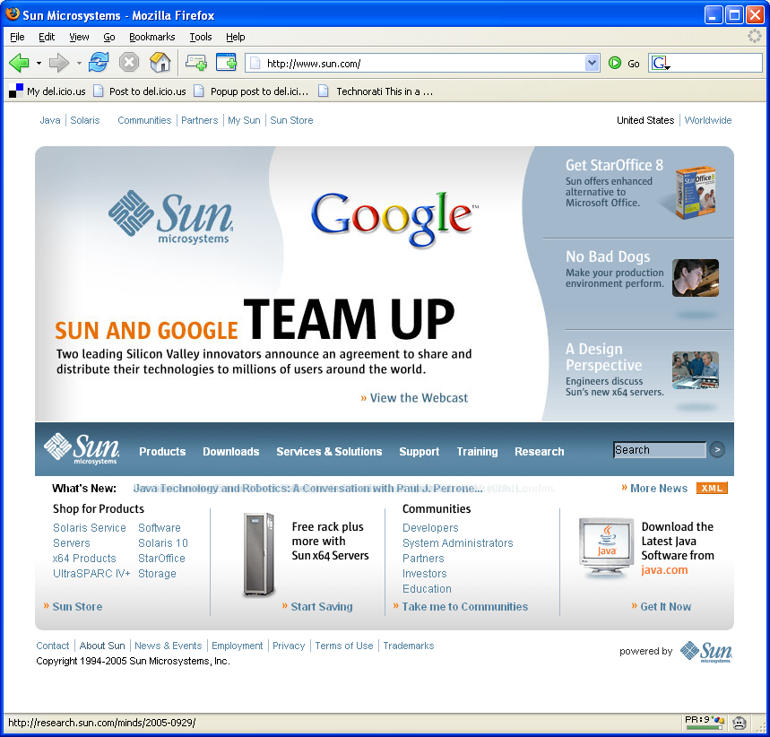 Al final, un acuerdo que tal vez pueda ser prometedor, una subida de un 8% durante unas horas en las acciones de Sun, y poco más. Especulaciones, preámbulos, interés enorme de Sun porque se le vea bailando con la chica guapa del barrio (como hoy reflejan a toda plana en la portada de su web), y de lo que se especulaba antes del webcast, nada o prácticamente nada. Lo que pudo ser y, al menos, por ahora, no ha sido.