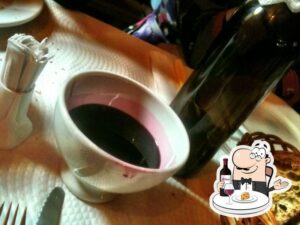 El vino de Barrantes se sirve en tazas blancas de loza, profundas, como si fueran de sopa. Cuando queda un culín, si se da vueltas a la taza y se deja reposar, se forman las llamadas «flores», como ésta o esta otra (téngase en cuenta que mi pericia en el tema es escasa o inexistente). Al que le sale la flor más fea, paga la ronda. Si eres de poca confianza, te pondrán una taza más reluciente, lo cual ayuda a que salgan mejores flores – y compensa tu presumiblemente escasa «habilidad floratoria».