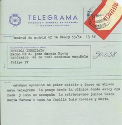 En casa recibimos uno el pasado mes de diciembre enviado para felicitar a mi mujer por un premio recibido, y no se que fue más emocionante si el recibir una felicitación (por parte de alguien que te quiere y quiere compartir esa alegria contigo) o recibir un telegrama.