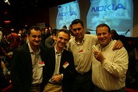 Hoy aparece en el Ciberpaís una interesante entrevista con David Sifry, creador de Technorati, esa herramienta impresionantemente buena que usamos casi todos para muchas cosas. A David lo conocí en LesBlogs en París el pasado Diciembre (en la foto, Jose Antonio del Moral, Julio Alonso, yo mismo y él, en foto de Víctor Ruíz), y me pareció una de las personas más majas de trato y más interesado por lo que cualquier usuario le pudiese contar de todos los fundadores de empresas que he conocido. Estaba pendiente de todo, de cualquier opinión, si mencionabas algo que tuviese que ver con technorati esperaba al final de la sesión y se iba a hablar contigo… de esas personas que es un gustazo conocer. David aparece en ocasiones haciendo comentarios en blogs que le citan, y contesta personalmente a mensajes enviados con críticas o preguntas sobre el buscador, lo que te da algunas de las claves del éxito de Technorati, el buscador que sabe escuchar y que consiguió demostrar que para la blogosfera, para la web actual, los buscadores convencionales, incluido el omnipotente Google, eran demasiado lentos.
