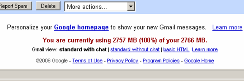Over 2767.044482 megabytes (and counting) of free storage so you’ll never need to delete another message (aunque como hemos podido ver, lo de q nunca tendremos q borrar un mensaje no es cierto…