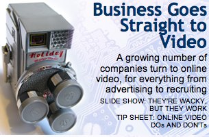 El cuadernillo central del Business Week de esta semana, «CEO Guide to Technology« está dedicado al fenómeno del vídeo en la red y al comportamiento viral que muchos de ellos consiguen generar. Contiene una serie de artículos bastante interesantes: «Business goes straight to video«, «The Diet Coke and Mentos explosion«, «Viral video grows up«, «Asia’s funniest home videos – from Intel«, «They are wacky, but they work«, «Video blogging: the CEO guide to online video« (con Robert Scoble), y «Online video: do’s and dont’s«.