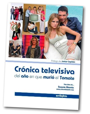 (Creo que para esta entrada no me va a hacer falta el disclaimer :-) Ya está en las librerías la «Crónica televisiva del año en que murió el Tomate«, el libro de Susana Alosete, esa chica que tengo el gusto de compartir con la tele. Un libro que viene a extraer las entradas que ella misma ha considerado más significativas de su blog, y que agrupa y ordena con el fin de representar lo que ha sido, desde su visión, el año televisivo en España, con algunas reflexiones sobre el futuro del medio y los diferentes movimientos de las cadenas con respecto a la red. Además, algunas citas extraídas para ilustrar los que ha considerado fenómenos interesantes del año, códigos QR que vinculan con numerosos clips de vídeo e información adicional en la red, y un interesante prólogo de Javier Capitán.