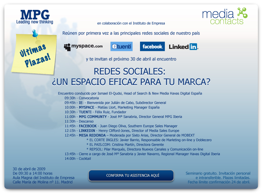 Este vídeo recoge algunas preguntas que pude hacer a directivos de Facebook, LinkedIn, MySpace y Tuenti a cuenta del evento «Redes Sociales, ¿un espacio eficaz para tu marca?» que se celebró en IE Business School el pasado 30 de Abril. Ha sido publicado en Jornal de Negocios, el principal diario económico portugués, y está en inglés con subtítulos en portugués.