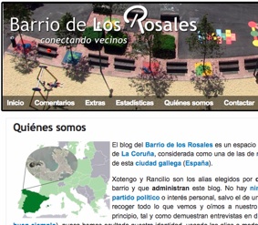 El número de respuestas a este tipo de encuestas es habitualmente utilizado por los expertos en planificación urbana como un indicador de la sensibilidad, nivel de colaboración e implicación de los ciudadanos con asuntos como la gestión y planificación municipal. En un caso que conozco con relativo detalle, el del barrio de Los Rosales en La Coruña, este modelo de implicación se percibe claramente: Los Rosales es uno de los barrios de desarrollo más reciente de la ciudad, con una población predominantemente joven de renta media, en cuya comunicación y vertebración juega un papel importante el blog del Barrio de Los Rosales, creado inicialmente por dos vecinos de la zona, pero con un desarrollo cada vez mayor en cuanto a popularidad, número de colaboradores, comentarios por entrada, etc. El blog desarrolla todo tipo de actividades: colaboración, denuncia, noticias, debates y, en general, todos aquello que puede resultar de interés para los vecinos, con un papel cada vez más central dentro de la comunidad, muy reconocido ya por los medios de información y por los comerciantes de la zona. El blog funciona como medio hiperlocal, generando una mayor implicación de los vecinos en los asuntos relevantes de su barrio, y funcionando como un vehículo de integración de la comunidad a todos los niveles.