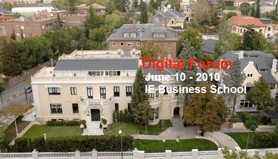 Los alumnos de los Clubs de Marketing y de Entrepreneurship de IE Business School han organizado un Digital Forum, que tendrá lugar este jueves a partir de las 17:00, y para el que han conseguido gestionar un programa verdaderamente interesante, y me han pedido que les ayude a comunicarlo.
