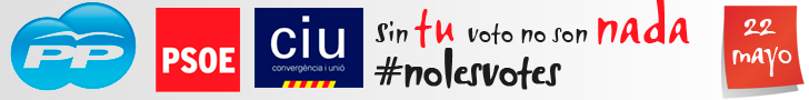 Se aproxima la campaña electoral para las próximas elecciones del día 22 de mayo, y el movimiento #nolesvotes tiene ya lista una hornada de banners para que los pongas en todos los sitios que puedas. Hay varios formatos disponibles: