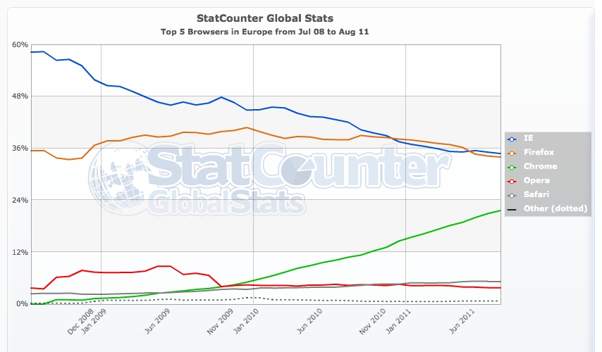 – Firefox y Chrome suman ya más de la mitad de los navegadores, el bajonazo del IE de los últimos años ha sido tremendo.