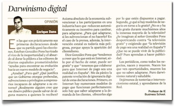 Mi columna de esta semana en Expansión se titula «Darwinismo digital«, y está dedicada a las declaraciones de Esteban González Pons en la Asociación de Editores de Diarios Españoles, AEDE, un foro que conozco muy bien.