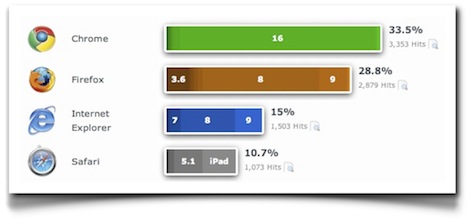 Debo creer que los datos sobre las estadísticas de uso de los distintos navegadores que se ofrecen en la red por distintos evaluadores de prestigio, son ciertas, claro, pero si es cierto que a todos aquellos amigos, ya de cierta edad, que se ponen a mi alcance y a todos los que usamos internet como medio profesional y/o vocacional no existe ninguno mejor que el Google Chrome. O sea, que no se use Chrome por todos los internautas es un problema de información y/o de vicio por no entrar en cambios.