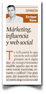 Mi columna de esta semana en Expansión se titula «Marketing, influencia y web social» (pdf), e intenta plantear un enfoque sencillo para entender la redefinición del marketing en el escenario de la web social en torno a dos conceptos: difusión e influencia.