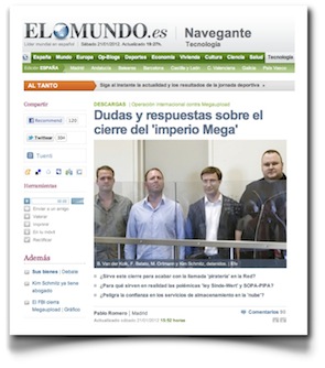 Pablo Romero, de El Mundo, me envió algunas preguntas por correo electrónico sobre el cierre de Megaupload ayer, y hoy las ha publicado bajo el título «Dudas y respuestas sobre el cierre del ‘imperio Mega’«.
