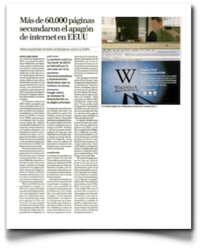 Miguel Ángel Criado, de Público, me envió cuatro preguntas por correo electrónico para el artículo que ha publicado hoy, titulado «Más de 60.000 páginas secundaron el apagón de internet en EEUU» (ver en pdf).