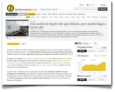 Ana P. Alarcos, de La Información, me pidió un párrafo de opinión sobre los resultados recientemente publicados de Apple, y ayer publicó un par de notas al respecto, en los artículos titulados «Viaje al futuro: ¿cuánto venderá Apple en 2014?» y «Una acción de Apple vale 456 dólares, pero puede llegar a costar 581«.