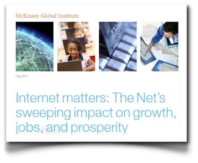 En el informe se aportan datos para entender la contribución de internet a la generación de riqueza mediante un estudio en trece países (Alemania, Brasil, Canadá, China, Corea del sur, Francia, India, Italia, Japón, Rusia, Suecia, Reino Unido y Estados Unidos), en los que ha determinado un promedio de incremento del PIB del 3.4%. En la parte de la muestra calificada como «países maduros», que excluye a Brasil, China, India y Rusia, se calcula que internet es responsable del 21% del crecimiento, que ha eliminado medio millón de puestos de trabajo, pero que ha contribuido a crear 1.2 millones de nuevos empleos, dando lugar a 2.4 puestos nuevos por cada puesto perdido. Además, un 75% del crecimiento se ha producido no en empresas de las denominadas «de internet», sino en industrias definidas como tradicionales.