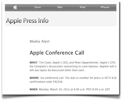 Para entender la importancia de este anuncio, es preciso documentar un poco la situación. Primero, el hecho: no es habitual que las compañías acumulen cantidades tan monstruosas de dinero en efectivo. Lo habitual es que cuando las operaciones son exitosas y eso genera cantidades sustanciales de dinero, este dinero se destine a alguna partida en concreto, a la expansión, a adquisiciones, a asegurar suministros, etc. o, en último término, se reparta como dividendos a los accionistas. La idea en este caso es que los accionistas perciben valor o bien a través de la venta de sus acciones revalorizadas – absolutamente espectacular en el caso de Apple – o bien mediante dividendos, que suponen una forma de decir «aquí tienes el excedente que he generado con el dinero que me diste». En el caso de las compañías en mercados muy dinámicos, resulta relativamente habitual que no se repartan dividendos, dado que estos se ven como una forma de decir «el mercado está maduro, voy a seguir haciendo lo mismo que ya hago, y no necesito enormes inversiones». En el caso de Apple, la compañía ofreció dividendos sistemáticamente entre los años 1987 y 1995 cuando Steve Jobs no estaba en la compañía, y ha llevado a cabo splits de 2×1 en 1987, 2000 y 2005. Apple se ve sometida a una presión constante de los analistas que preguntan cuál va a ser el destino de esa enorme cantidad de dinero, y que consideran una gestión ineficiente tenerlo simplemente acumulado generando una renta de alrededor del 1%. Sin embargo, Steve Jobs nunca se mostró partidario de repartir dividendos. Si con Steve fallecido, Tim Cook, que ha declarado «no tener ninguna postura religiosa en ese sentido», decide darlos, representaría un giro importante en la forma de gestionar la compañía.