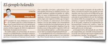 Mi columna de Expansión de esta semana se titula «El ejemplo holandés» (pdf), al hilo de la reciente aprobación en Holanda de una ley que garantiza la aplicación del principio de neutralidad de la red.