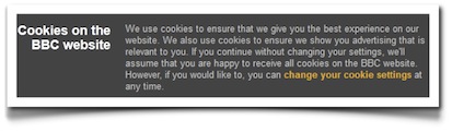 La web de la BBC muestra desde hoy una advertencia a sus usuarios para adaptarse a la normativa europea de uso de cookies, que implica multas de hasta medio millón de libras por incumplimiento.