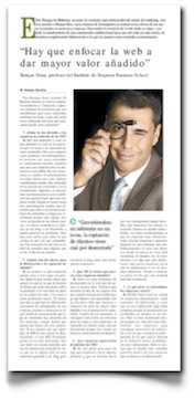 Antes de la charla tuve un rato para hablar con Ainara Sarobe, que me hizo una pequeña entrevista que publicó hace unos días en Estrategia Empresarial bajo el título «‘Hay que enfocar la web a dar mayor valor añadido’, Enrique Dans, profesor del Instituto de Empresa Business School» (ver en pdf).