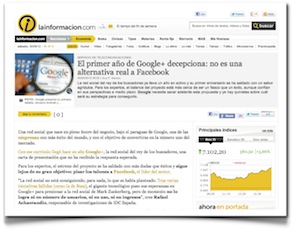Ana P. Alarcos, de La Información, me llamó para hablar de Google+ al cumplirse un año de su inicio de actividades, y ayer publicó algunas de mis opiniones bajo el título «El primer año de Google+ decepciona: no es una alternativa real a Facebook«.