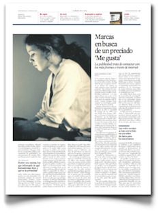 Alicia Rodríguez de Paz, de La Vanguardia, me llamó para hablar de marketing en las redes sociales a cuenta de los planes de Facebook de extender la edad a la cual se pueden abrir perfiles en la red social a los menores de trece años, y ayer lo publicó en una columna con el título «Marcas en busca de un preciado ‘Me gusta’«, que acompañaba a un reportaje a doble página de Maite Gutiérrez titulado «Menores en las redes sociales«.