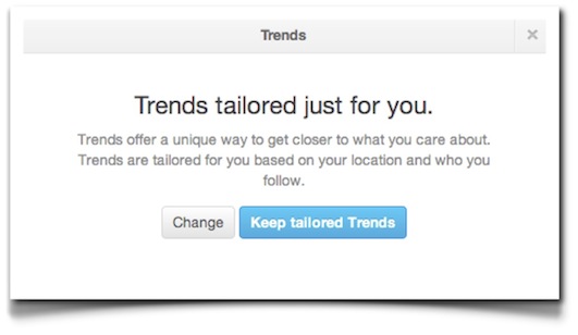 Despues de ver la personalizacion que me hace twitter, como que me quedo con las tendencias españolas, por que no han dado ni una. No se si sera por mis seguidores o los que sigo, pero normalmente no entro en esas dinamicas, ni la gente de mi alrededor (casi ninguna) tampoco. Esperaremos a la version 2.0
