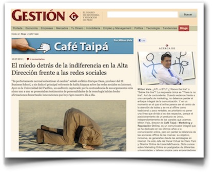 Milton Vela, de Café Taipá, escribe en Gestión acerca de la resistencia de las empresas y los directivos hacia la web social.
