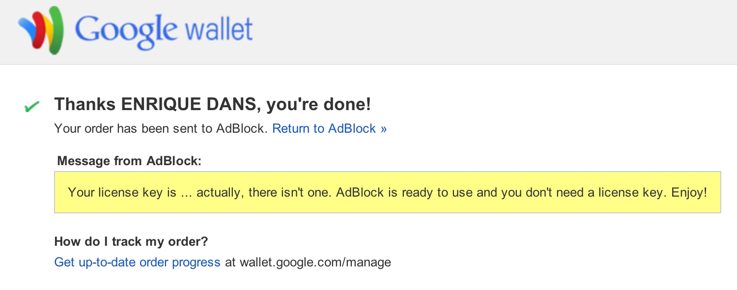 España es el país líder del mundo en cuota de mercado para Google: no es un país especialmente importante en su cuenta de resultados global, pero sí uno en el que puede medir adecuadamente. Lo importante no es adoptar una posición «religiosa»: estaríamos simplemente demostrando a Google que sin sus usuarios, no es nada, y que no puede actuar de espaldas a nuestros intereses o tomar decisiones que abiertamente nos perjudican en funciónd e intereses de terceros. Obsérvese la ironía: hablo de bloquear la publicidad de Google, pero lo publico en Google+, propongo donar a AdBlock Plus, pero hago mi donación con Google Wallet. No se trata de «boicotear Google», sino de transmitir un sentimiento, una protesta, y de hacerlo demostrando que, si la acción toma cuerpo, la empresa puede tener un problema. Recordar a Google que se debe a sus usuarios. Si Google quiere irse a la cama con los lobbies del copyright, allá ella. Pero no con mi dinero.