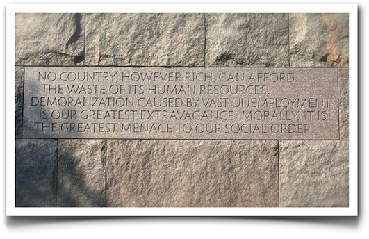 («Ningún país, por rico que sea, puede permitirse el despilfarro de sus recursos humanos. La desmoralización provocada por un desempleo elevado es nuestra mayor extravagancia. Moralmente, es la mayor amenaza para nuestro orden social.»)