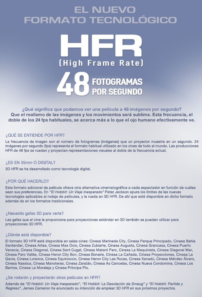 Una cosa es anclarse en el pasado y otra cosa es cambiar cosas sin criterio ninguno. Yo vi El Hobbit en el preestreno en Callao y no noté ningún tipo de diferencia, ni para bien ni para mal. Es un sobrecoste y un añadido tecnológico inapreciable, que se podría haber empleado, por ejemplo, en mejorar el 3D, que para mí es extremadamente decepcionante, puesto que sólo da sensación con momentos muy puntuales, como objetos pequeños, por ejemplo.
