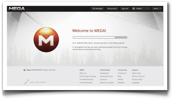 Tal y como había anticipado, Kim Dotcom lanzó la nueva Mega en el dominio neozelandés mega.co.nz exactamente el mismo día, hora y minuto en que el año pasado sufrió el asalto a su mansión. Un servicio funcional y espartano en su aspecto, que ofrece 50GB de almacenamiento gratuito, y tres categorías de cuentas de pago: de 500GB de almacenamiento y 1TB de transferencia por €9.99/mes, de 2TB de almacenamiento con 4TB de transferencia por €19.99/mes, y de 4TB de almacenamiento con 8TB de transferencia por €29.99/mes. Los mejores análisis del servicio los he leído en Gizmodo y en Ars Technica, que también publicó una interesante entrevista con Kim Dotcom el día antes del lanzamiento.