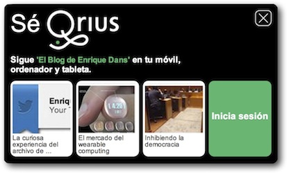 Ayer activé la opción de consulta de los contenidos de esta página a través de Qrius, un sistema multiplataforma de gestión de feeds creado por Mediafed que permite la visualización de las entradas del blog en todas las plataformas a través de la app Taptu. La aplicación está disponible para ordenador, Android, iOS, BlackBerry y tabletas Nook, lo que me permite ofrecer una experiencia de usuario razonable a quienes quieran consumir el contenido de esta página a través de casi cualquier dispositivo móvil.