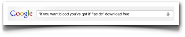 Mención aparte merece el caso de Google: una empresa que ha aplicado su lobby para influir sobre el texto de la ley con el fin de obtener su exclusión de la misma, forzando una situación a todas luces incoherente: en muchas ocasiones, cuando alguien pretende descargar al margen de los canales de la industria, por ejemplo, una canción, lo que suele hacer es dirigirse directamente a Google y teclear en su caja de búsqueda la combinación «título» + «artista» + download + free, y seleccionar la opción más adecuada. Hagamos una demostración práctica con propósito puramente didáctico: si quiero obtener la canción «If you want blood» de AC DC, todo lo que tengo que hacer es entrar en Google, teclear esto,