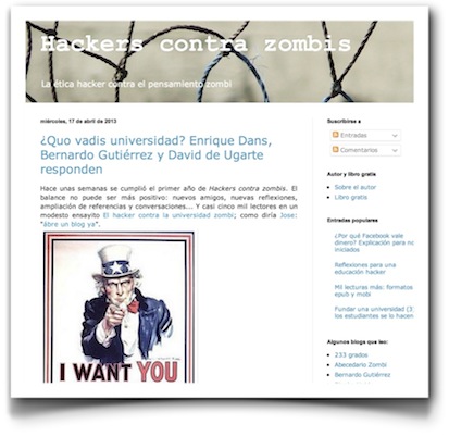 Jorge Jiménez, profesor de la Universidad Europea de Madrid y autor del blog «Hackers contra zombis«, me envió algunas preguntas por correo electrónico sobre los retos de la universidad en la sociedad de la información, y las ha publicado conjuntamente con las respuestas de Bernardo Gutiérrez y David de Ugarte, bajo el título «¿Quo vadis universidad? Enrique Dans, Bernardo Gutiérrez y David de Ugarte responden«.