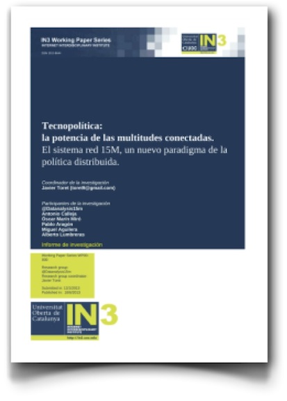 Este «Tecnopolítica y 15M, la potencia de las multitudes conectadas. El sistema red 15M, un nuevo paradigma de la política distribuida» me ha parecido un trabajo académico muy serio de analítica de los datos generados por todos aquellos eventos que vivimos en nuestro país entre febrero de 2011 y junio del 2012, al hilo de todo ese movimiento que se dio en llamar 15M.
