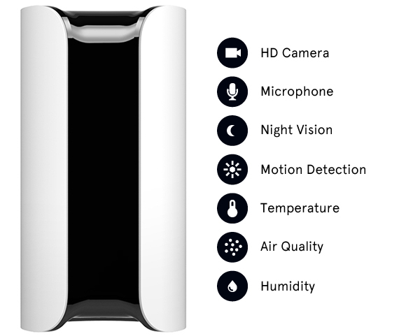 Temperatura, calidad del aire, humedad, micrófono ??? Esto no aporta seguridad sólo información. Es un cruce entre una cámara IP y una estación meteorológica para el hogar.