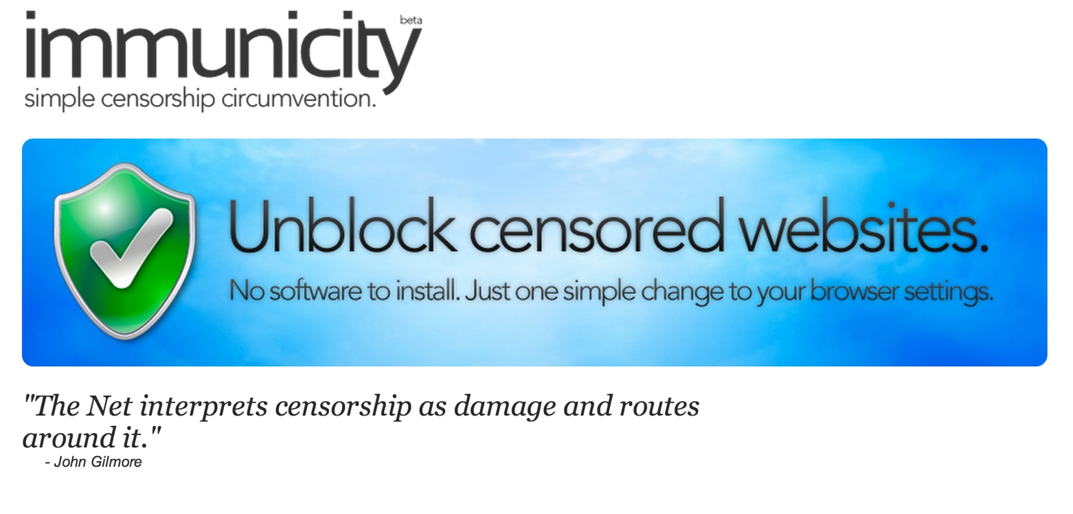 Un servicio gratuito, Immunicity, ofrece a los ciudadanos británicos – y a los de cualquier otro país del mundo en el que se practique la censura – la posibilidad de acceder a cualquier página web bloqueada sin necesidad de instalarse nada, únicamente haciendo un sencillo cambio en la configuración del navegador. El cambio afecta al fichero de autoconfiguración del proxy (PAC), de manera que el tráfico no sujeto a bloqueo sigue llevándose a cabo de la manera habitual, pero las solicitudes hacia páginas incluidas en la lista de sitios bloqueados son dirigidas a través de una red de proxies, y no almacenadas de ninguna manera. El usuario no tiene que crearse una cuenta, ni contratar un servicio, ni aceptar publicidad: es un servicio gratuito destinado a demostrar la inutilidad de la censura gubernamental. Los fondos provienen de Torrenticity, una red de proxies destinada a desbloquear el acceso a sitios de torrent, que sí sirve publicidad a sus usuarios y que ha visto crecer su popularidad a partir del intento de bloqueo británico a sitios como The Pirate Bay.