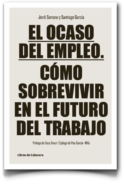 Mi amigo y compañero de colegio Santiago García me pidió que le contestase tres preguntas para el libro que estaba preparando junto con Jordi Serrano, titulado «El ocaso del empleo. Cómo sobrevivir en el futuro del trabajo«, editado por Libros de Cabecera, que acaba de salir con prólogo de Gary Swart y epílogo de Pau Garcia-Milà, y que aporta una visión muy interesante y bien documentada sobre el mundo del trabajo y su proyección de cara al futuro.