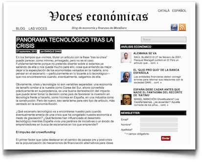 Ayer me publicaron en Voces Económicas un pequeño análisis sobre los aspectos relevantes que debemos tener en cuenta en la escena tecnológica de cara a una eventual salida de la crisis en nuestro país, titulado «Panorama tecnológico tras la crisis«. No, por supuesto no doy la crisis por terminada, simplemente intento plantear cuáles son los cambios que sería preciso tener en cuenta en el entorno tecnológico de cara a cuando nuestro país salga de esta especie de glaciación en la que nos encontramos.