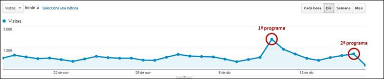 A nivel de actividad en la página web, las estadísticas resultan también bastante interesantes: sobre una media aproximada de 885 visitas diarias durante el año 2013 y 813 durante el mes de diciembre, el martes 10, fecha de emisión del primer programa grabado en las instalaciones, se alcanzó una actividad de 2100 visitas, seguidas de 1402 más el miércoles, con una tasa del 70% de visitantes nuevos y una tasa de rebote bastante baja, del 15%. El vídeo corporativo situado en la home, que habitualmente es reproducido entre 20 y 25 veces al día, superó las noventa visualizaciones. La semana siguiente, las visitas superaron las 1080, con 74% de visitantes nuevos y un rebote igualmente reducido, del 16%. En comparación, los resultados obtenidos superaron con creces los de una campaña de publicidad web llevada a cabo durante el pasado verano y que fue considerada rentable en cuanto a retorno en ventas.