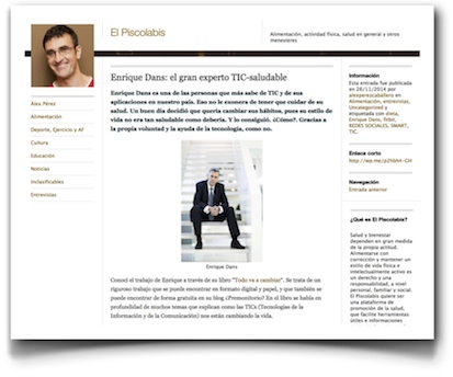 Coincidí con Àlex Pérez hace tiempo en una presentación de productos de Fitbit, y hace algunas semanas me pidió que le respondiese a un cuestionario bastante completo sobre mis hábitos en alimentación, deporte y temas relacionados para su página, que publicó ayer bajo el título «Enrique Dans: el gran experto TIC-saludable«.