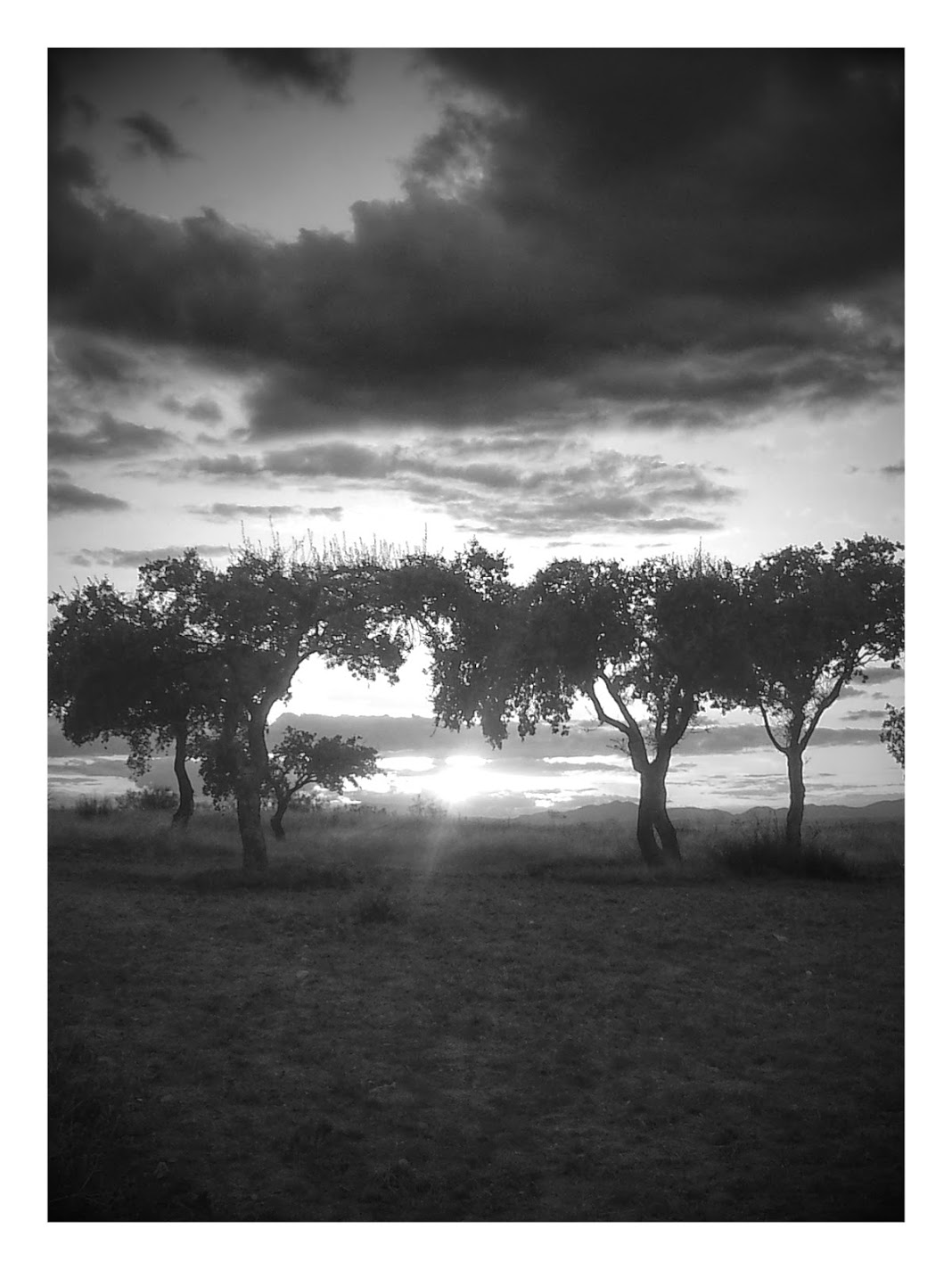 Pasmado. Llevo un buen rato pasmado mirando un recuadro que ha aparecido en la esquina superior derecha de mi pantalla de Google+: una fotografía con bastante buen aspecto, en blanco y negro, de un grupo de árboles en una puesta de sol. Al verla, ni siquiera pensé que fuese mía, aunque sí me sonaba lejanamente.