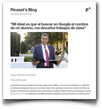Carlos Guerra me hizo una pequeña entrevista hablando sobre temas relacionados con la educación, y la ha publicado en el blog de Picasst, una pequeña startup entre Canarias y California dedicada al desarrollo de software de apoyo a procesos educativos, para grabar y compartir en la nube clases y presentaciones desde pizarras digitales o tablets.