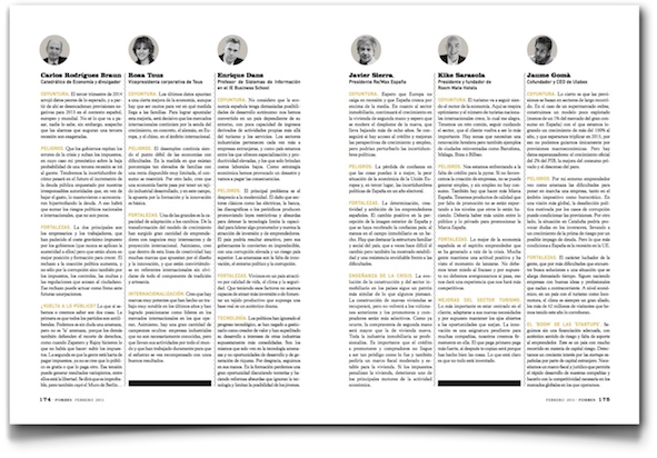 R. No considero que la economía española tenga demasiadas posibilidades de desarrollo autónomo: nos hemos convertido en un país enormemente dependiente de su entorno, con muy poca capacidad de generación de ingresos derivados de actividades propias más allá del turismo y los servicios. Los sectores industriales pertenecen cada vez más a empresas extranjeras, y como país, estamos estratégicamente «pillados en el medio» entre aquellos capaces de ofrecer un nivel de especialización y una productividad elevadas, y los que simplemente brindan costes laborales unitarios bajos. Como estrategia económica de país, hemos hecho un auténtico desastre, y vamos a estar muchos años pagando las consecuencias.